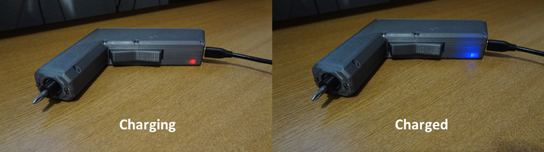 When it is time to charge the battery, just turn the main switch off and plug the unit to any available USB port. The red LED on the TP4056 will light while the battery is charging; when charged, the blue LED will turn on. There are no holes in the unit to see the LEDs; however, the right cover has a rectangle that is thinner than the rest of the wall so the LEDs are visible (Figure 18).