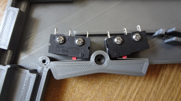 The trigger should feel secure in place but soft to the touch, and there should be a distinctive clicking sound when each switch is activated. The spring action of the switch is enough to return the trigger back to the rest position when released; if not, light sanding of the trigger axle will help.